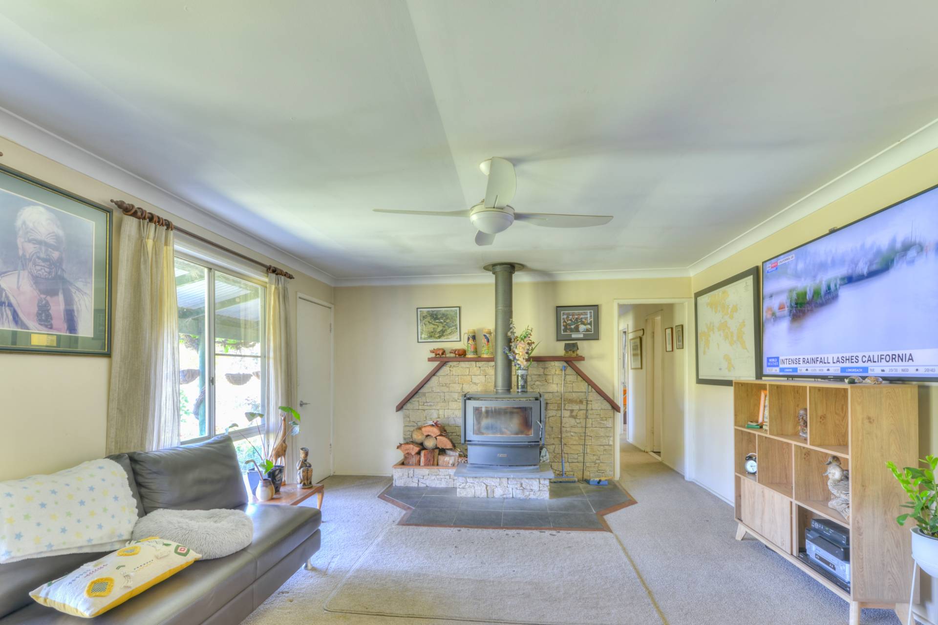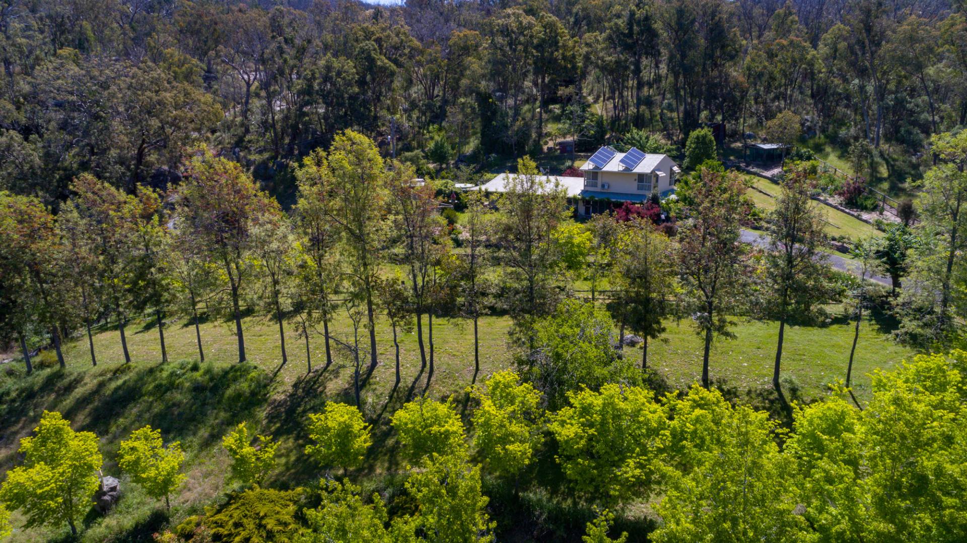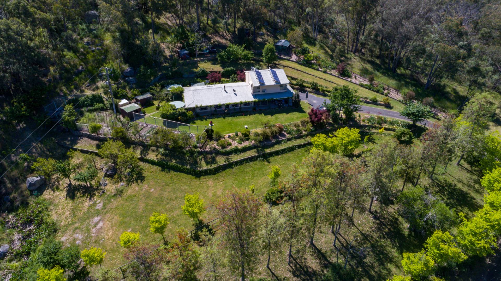 “Stronvar” is located only minutes from the village of Moonbi on 40.76ha (approx. 100ac). A modern hardi plank and iron home of 2/3 bedrooms set in a secluded manicured garden, looks high over the village of Moonbi. The home has an excellent wood heater, split system air cons and solar connected.