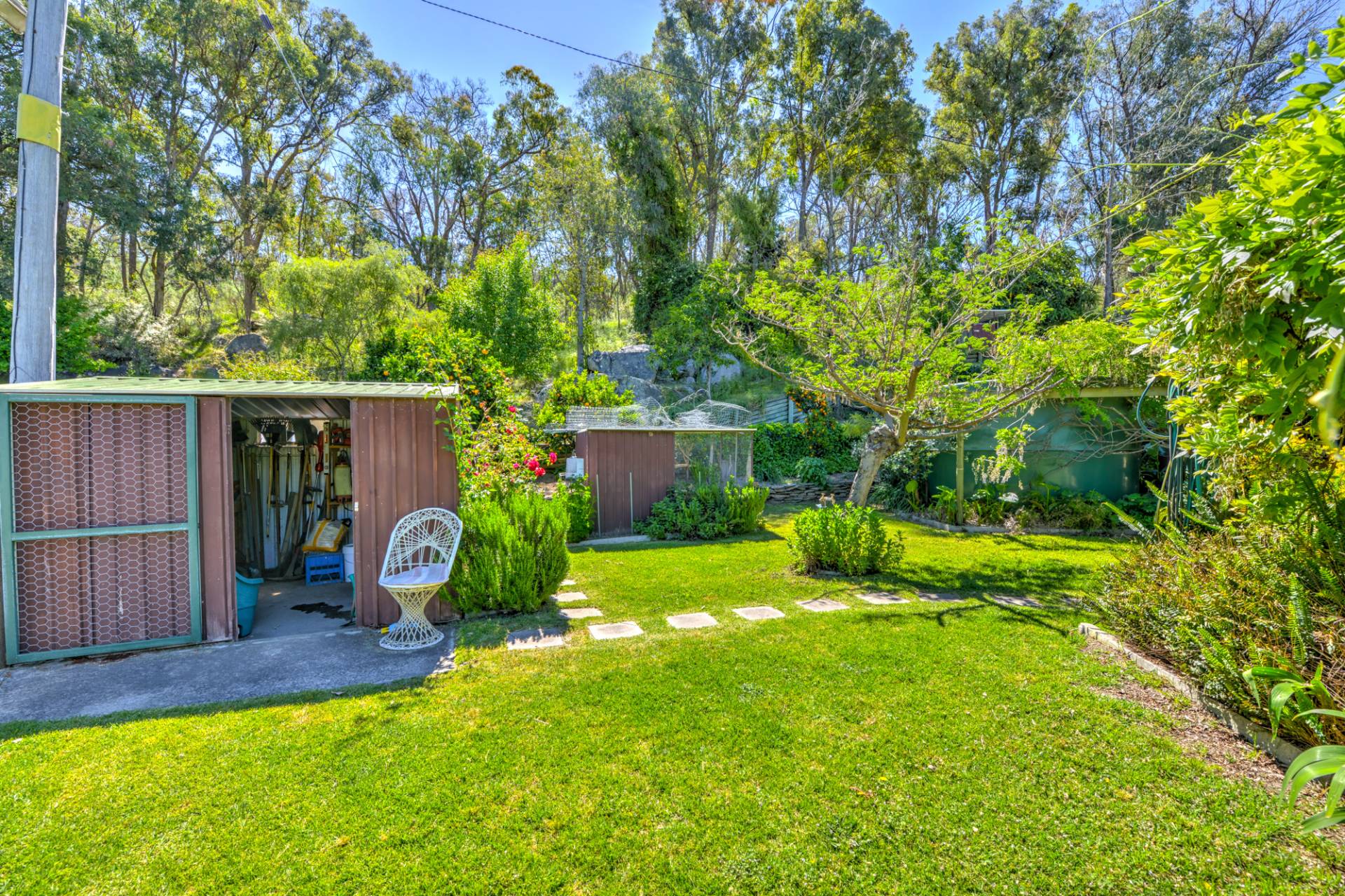 Water is a feature with a fully equipped bore with automatic watering system around the garden and some 12,000gal of rainwater storage. Improvements include a large vegie patch, 3 bird aviaries, tool shed & glasshouse, fern house and chook house all in use, all with water & electricity connected.