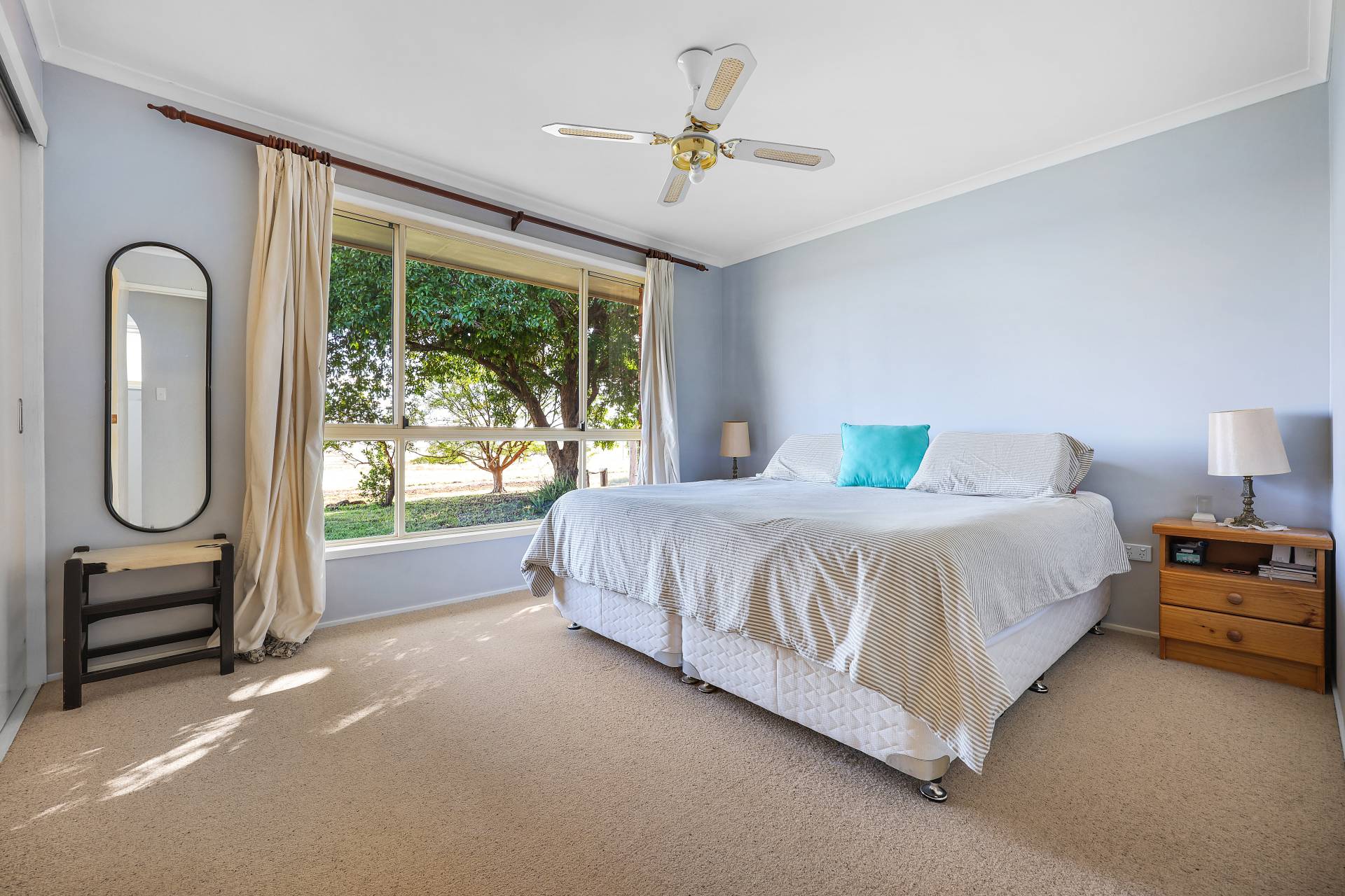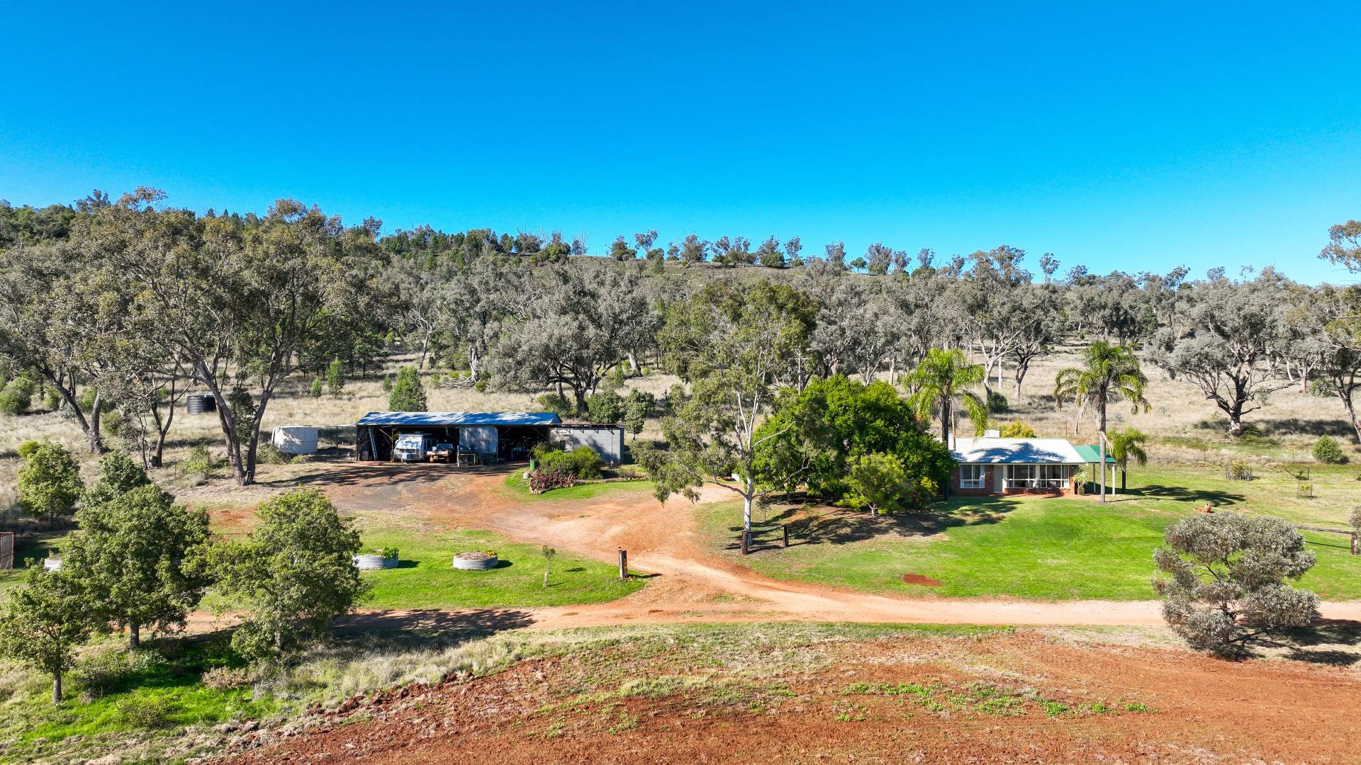 Improvements: The main home is set in a private location with views over the northern side of the property, offering spectacular sunsets. It is a brick veneer house with three bedrooms, all with built-in wardrobes, and a rumpus room. It features evaporative and ducted air conditioning, as well as a large paved outdoor entertaining area. A second cottage on the property has two bedrooms and has been previously rented out.