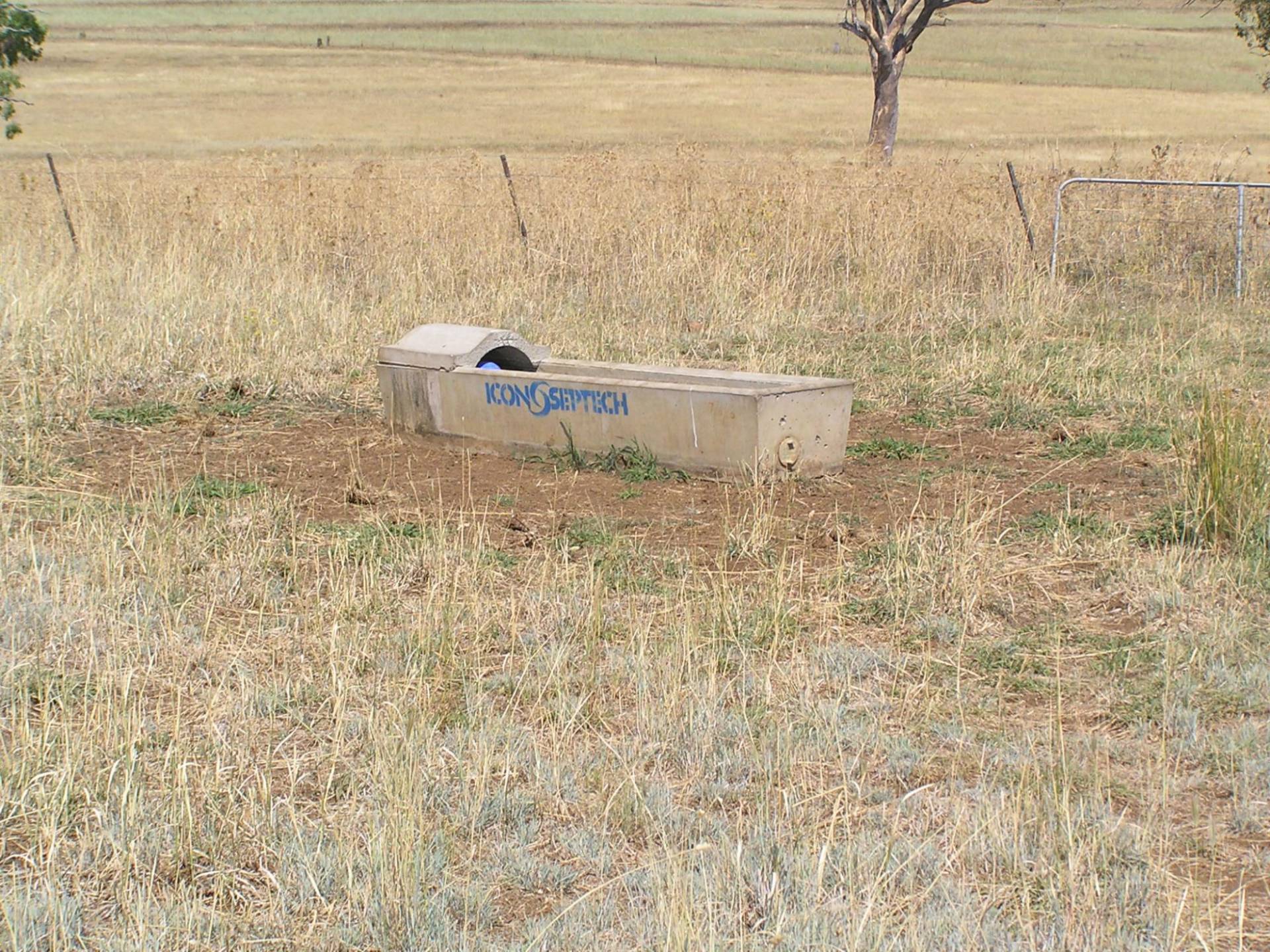 Equipped bore which pumps to tank and retriculates to 5 troughs.